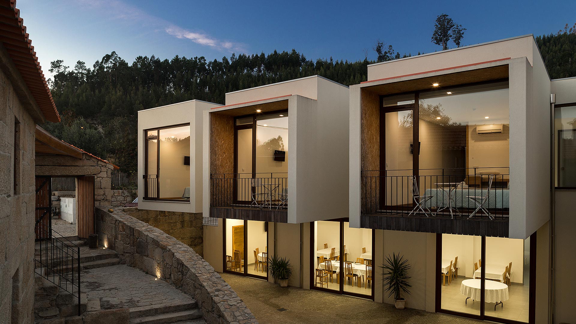 The access to three of the rooms of the existing house will be made through the courtyard common to all, a solution adopted, since we had restrictions in terms of adaptation of the program. There are also three rooms above the restaurant that will create, within who inhabits it, an environment of movement and dynamism, with constant communication to the "past". Eight of the rooms are identified individually, although they are the same, there are for each one a garden that closes them, and in each garden will be planted a different tree, so that it can characterize them. They face the spring and have a quiet and natural environment.